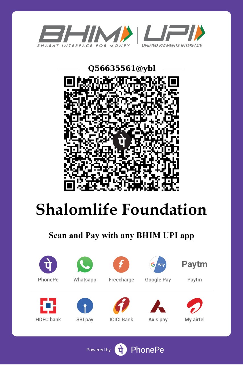 We thank God for your great love towards our ShalomLife Foundation. Your generous offering helps us reach out to families in Goa and all across the world. What you sow goes a long way in building the kingdom of God.